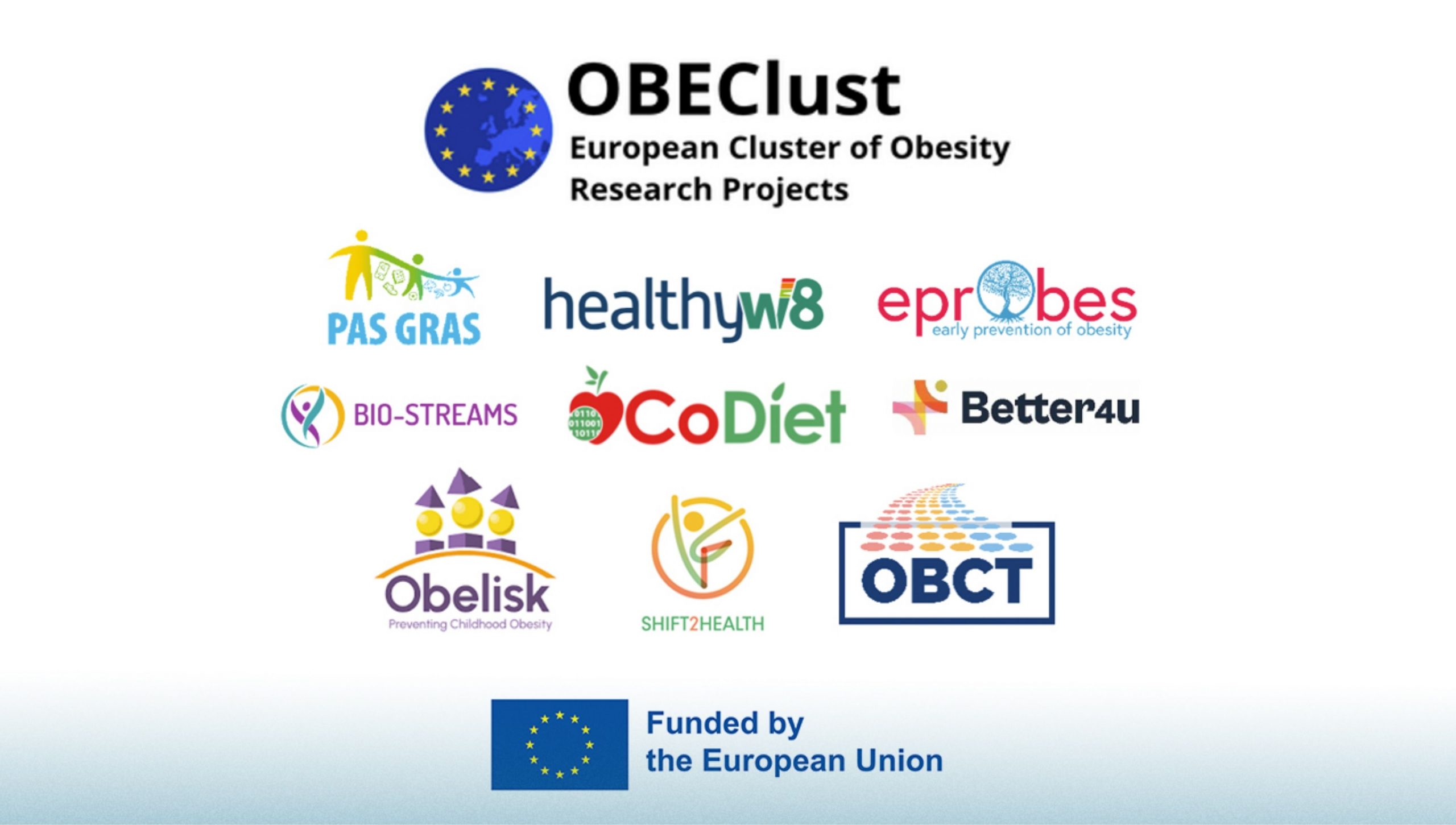 OBEClust es el European Cluster of Obesity Research Projects, un clúster europeo multidisciplinario que reúne a nueve proyectos de investigación financiados por la Unión Europea (y socios como UKRI y SERI) para abordar de forma conjunta la crisis de la obesidad en Europa. Se trata de una colaboración sin precedentes entre proyectos que trabajan desde diferentes perspectivas — prevención, factores de riesgo, intervenciones conductuales, estilo de vida, nutrición y enfermedades relacionadas — con el objetivo de maximizar el impacto científico y social de sus resultados.