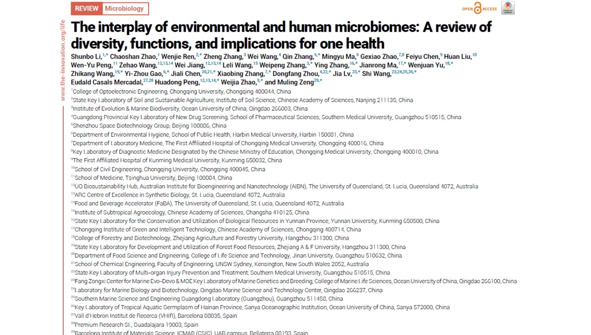 El artículo científico “The interplay of environmental and human microbiomes” acaba de publicarse en The Innovation Life y explora cómo las comunidades microbianas del medio ambiente y las del cuerpo humano están profundamente interconectadas.